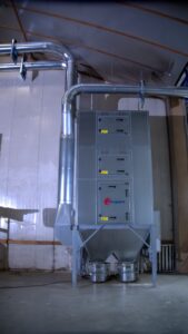 Jongejans installierte in Verhage die Agra PGF 500, eine leistungsstarke 18,5-Kilowatt-Staubabsaugungsanlage mit einem flüsterleisen, hocheffizienten Ventilator und automatisch mit Druckluft gereinigten Filtern. Das System sammelt den Staub in zwei rollbaren Behältern. Es saugt verschmutzte Luft an und gibt nach der Filterung gereinigte Luft wieder ab. Da die PGF 500 in Verhage in Innenräumen installiert ist, bleibt die warme Luft vollständig erhalten. Dadurch wird das Raumklima durch die Luftreinigung nicht beeinträchtigt.
